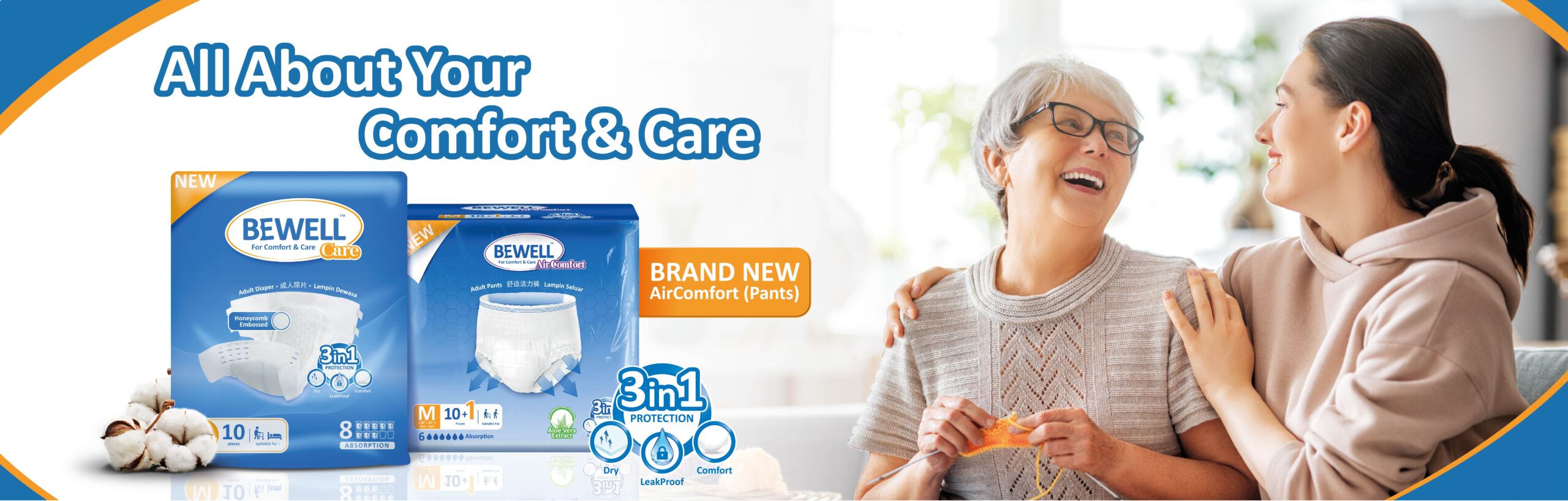 Bewell adult diaper ensures exceptional dryness through its Super Duo-absorbent core.